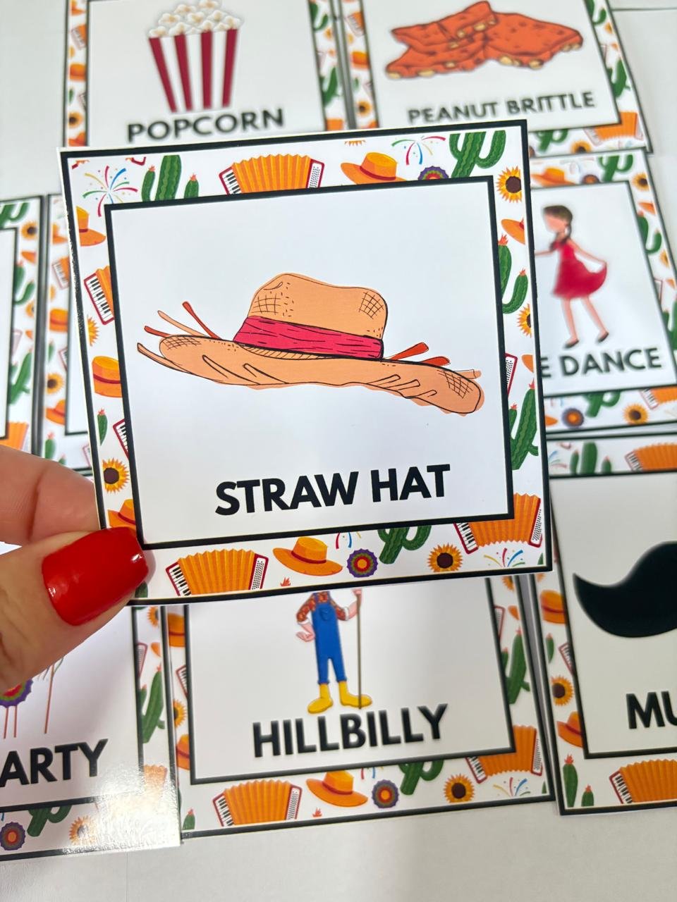 • Flashcards ilustrados com vocabulário junino – 18 flashcards