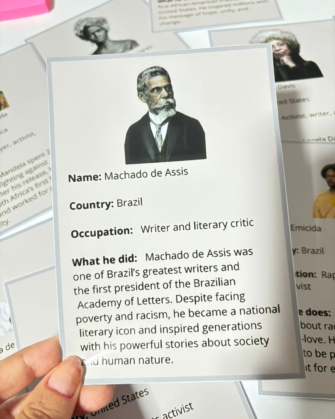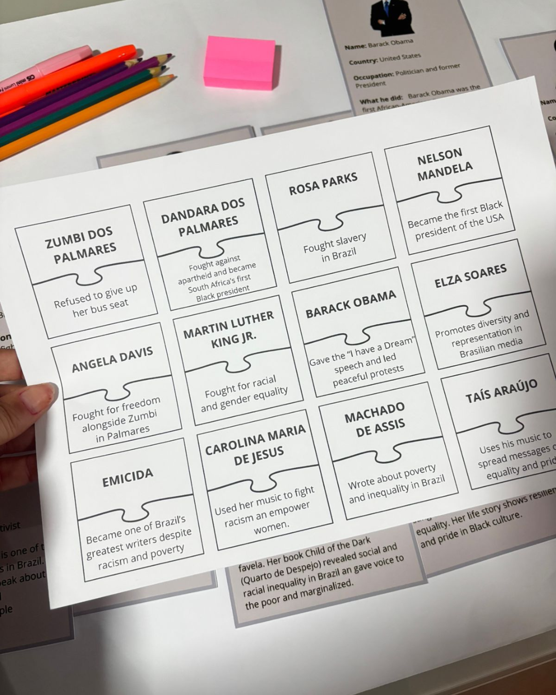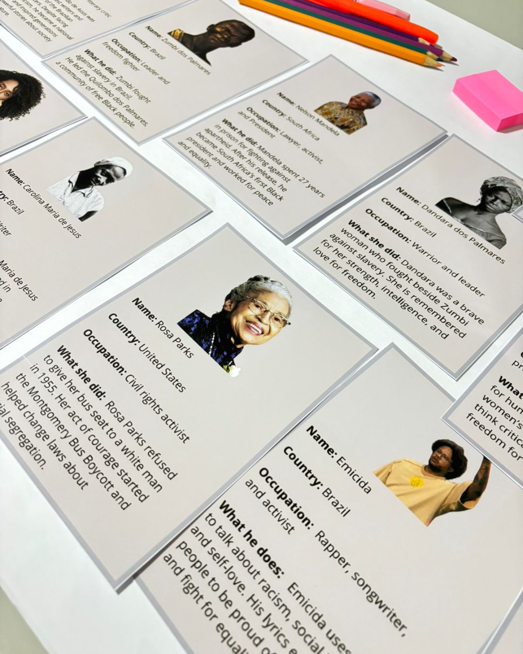 Com ele, seus alunos vão aprender inglês enquanto conhecem grandes personalidades negras que marcaram a história, como Zumbi dos Palmares, Dandara, Rosa Parks, Nelson Mandela, Angela Davis, Martin Luther King Jr., Barack Obama, Elza Soares, Emicida, Carolina Maria de Jesus, Machado de Assis e Taís Araújo.