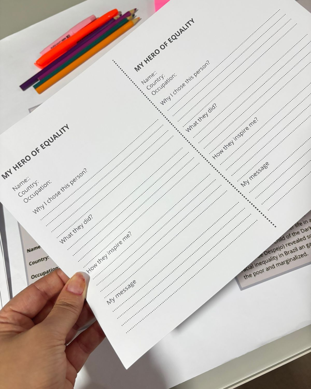 ✅ Página “My Hero of Equality” para produção escrita
