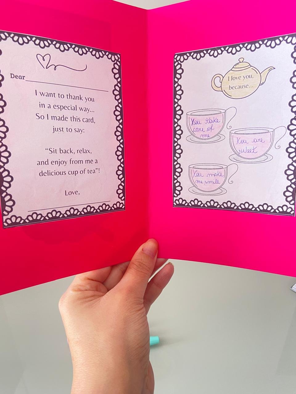 O cartão traz uma mensagem personalizada em inglês. Perfeito para trabalhar vocabulário, escrita e ainda emocionar quem vai receber!