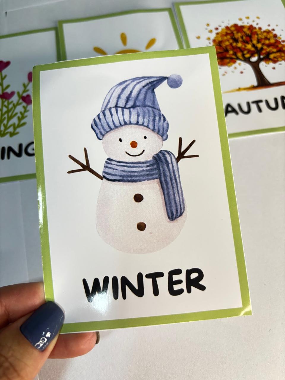 4 Flashcards das estações do ano (colorido e P&B)